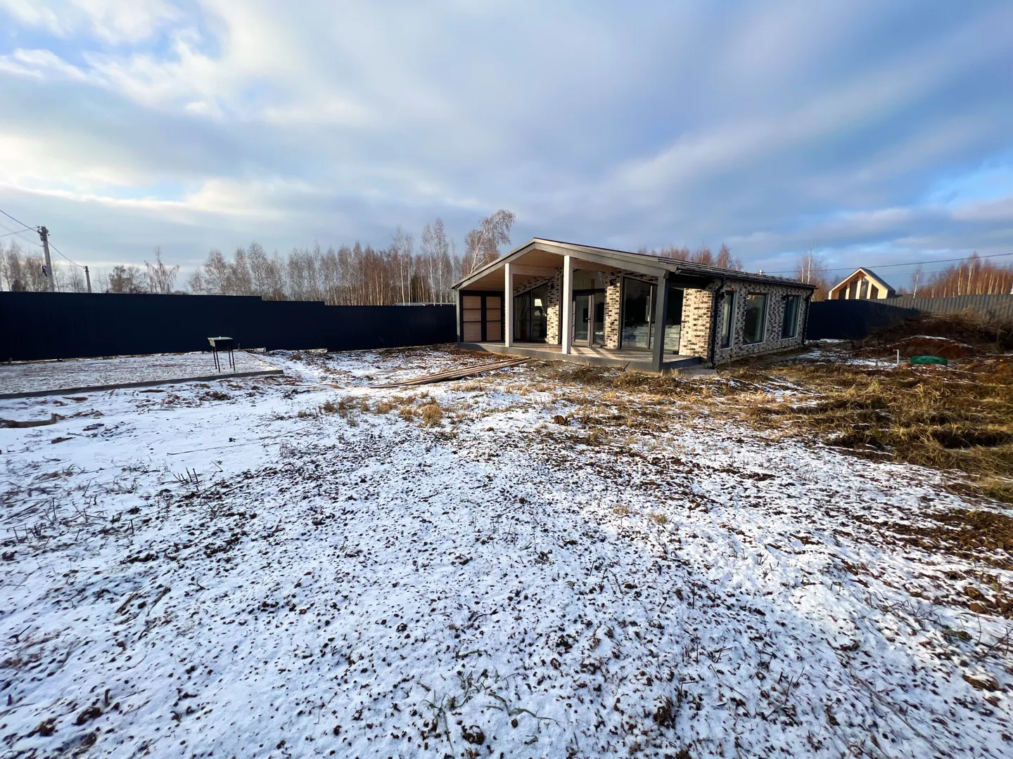 Современный новый просторный каменный дом в стиле BarnHouse с панорамными окнами в Афанасово Светлое